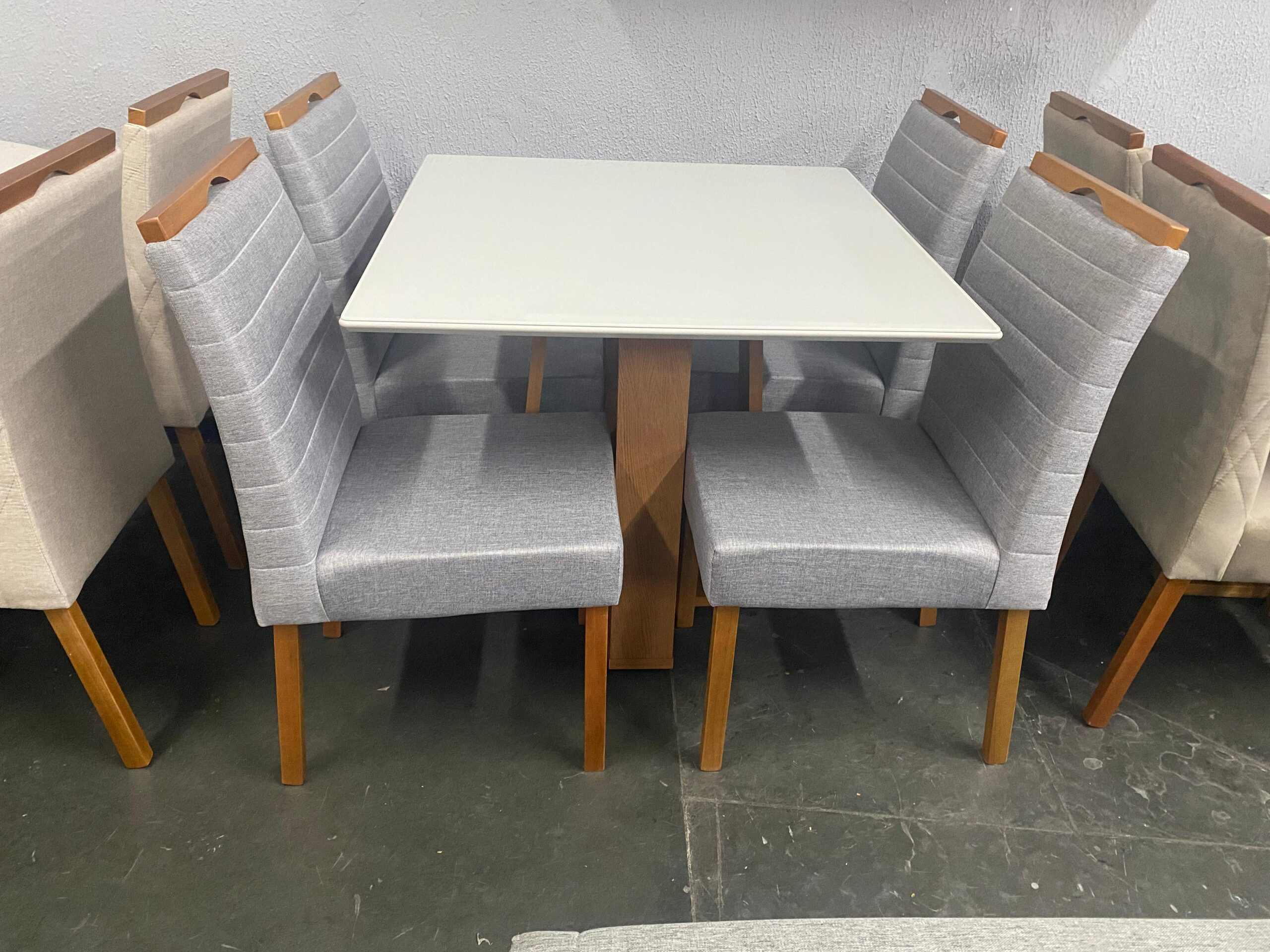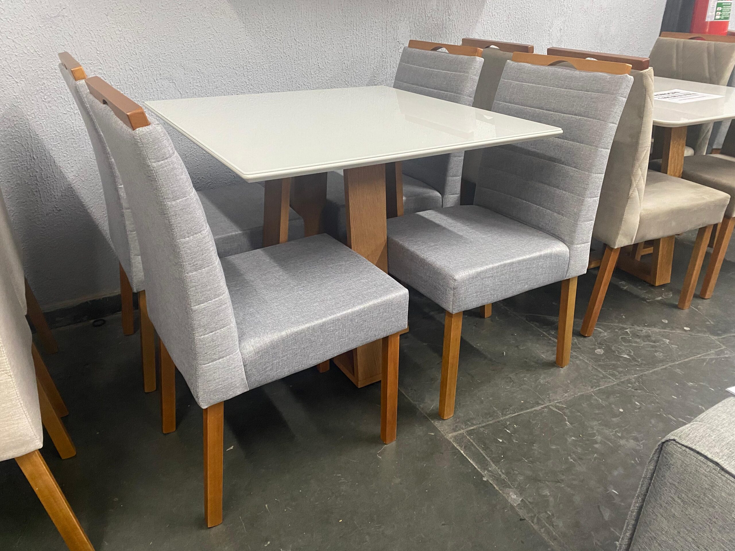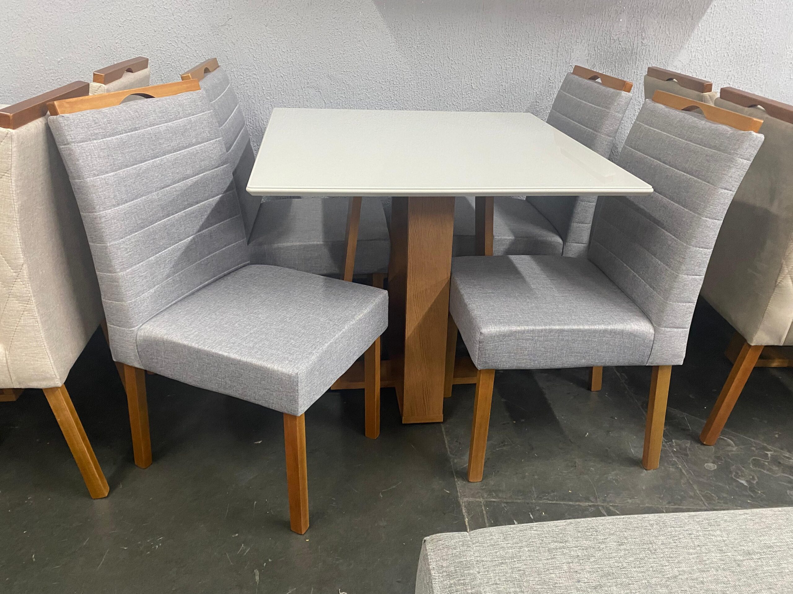 Acompanha 04 cadeiras em madeira maciça, consulte as cores disponíveis